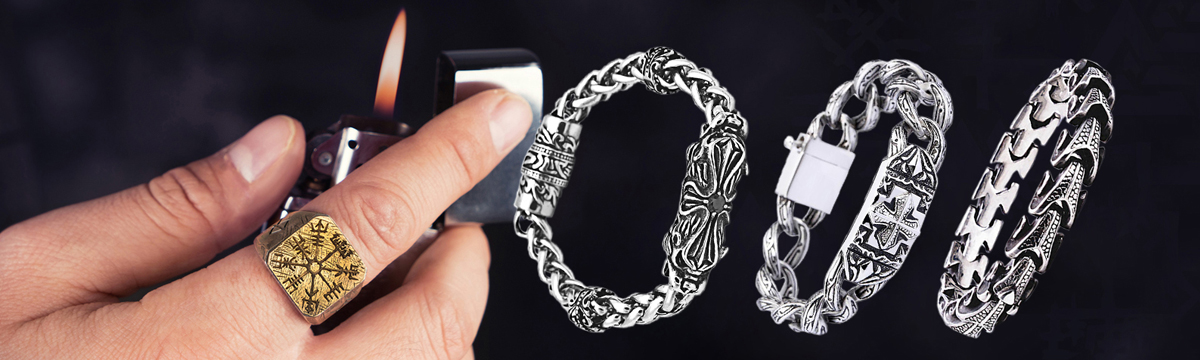 Antique Jewelry 北欧維京の印跡銀の指輪、男用、ルーントーン銀製品、リユーブアンドパルフェッシュスタイルのカップリング、調節可能、定制化キャッチコピー