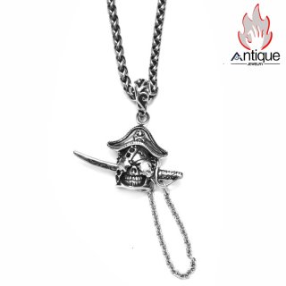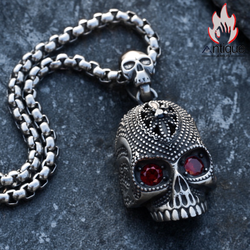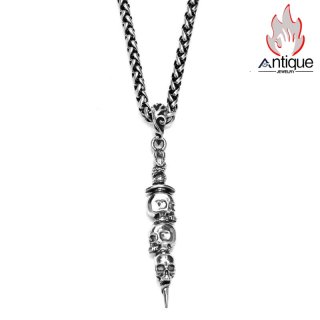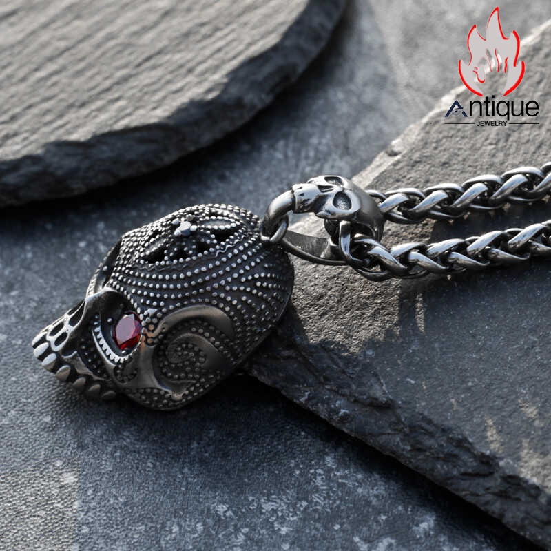 Antique Jewelry ダーク 彫刻スカルネックレス メンズ 個性的なチタン鋼ペンダント ヴィンテージセーターチェーン