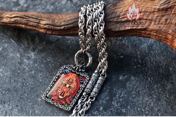 Antique Jewelry ヴィンテージ ザキラーム タンカネックレス チタン鋼 メンズ 仏牌 個性的な六字真言ネックレス