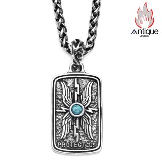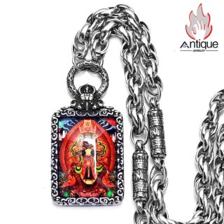 Antique Jewelry 象鼻神タンカ仏牌ネックレス メンズ 個性的なチタン鋼ペンダント 六字真言ネックレス