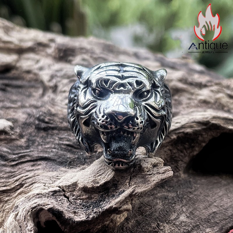 Antique Jewelry 虎 タイタンスチールリング 高級感 パンクスタイル 個性的なアクセサリー