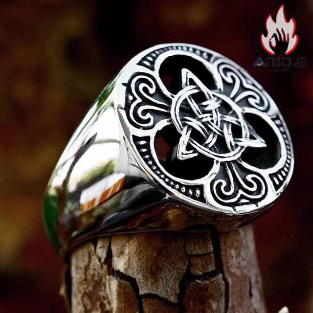 Antique Jewelry 北欧 ヴィキング ケルトノット タイタニウムスチールリング ビッグサイズ 高級感 レトロ ファッション 個性的 メンズリング