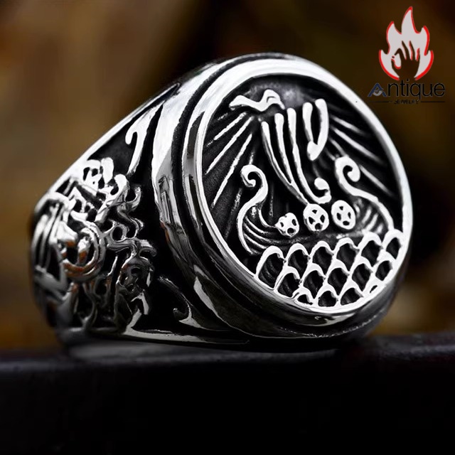 Antique Jewelry ファッショナブル 北欧 ヴィンテージ バイキング 海賊 航海船 タイ鋼リング 大サイズ パンク風 メンズアクセサリー に興味を持って頂きありがとうございます