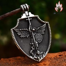 Antique Jewelry ワイド クロス シールド ペンダント 欧米風 ヴィンテージ 神話 天使 タイ鋼 ネックレス