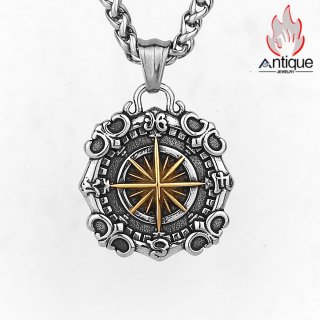 Antique Jewelry レトロ 海洋航行 星海コンパス チタン鋼ペンダント 新作 高級感 船の舵 船のアンカー ネックレス