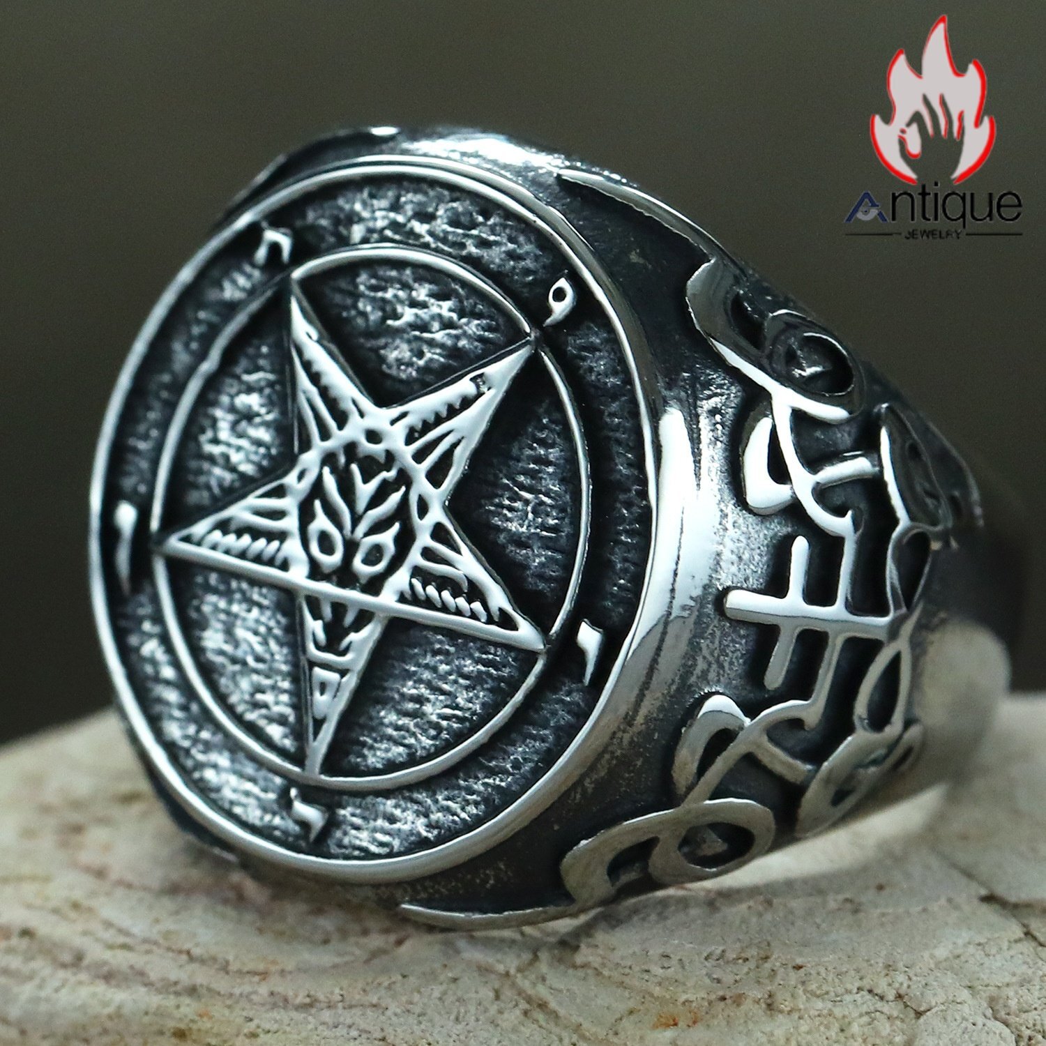 Antique Jewelry 新作 ワイドサイズ ビッグサイズ サタン悪魔 チタンスチールリング メンズアクセサリー ヴィンテージパンク風 五芒星指輪 に興味を持って頂きありがとうございます