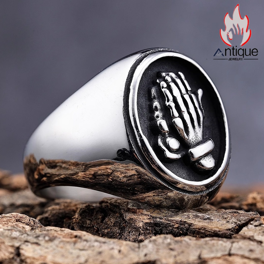 Antique Jewelry パンクスタイル 個性 ファッション 祈りの手 リング チタン鋼 シンプル ラグジュアリー 指輪
