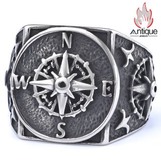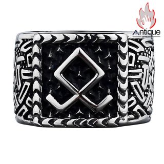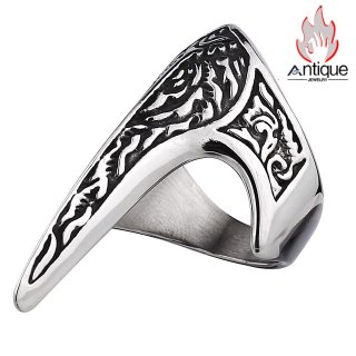 Antique Jewelry 欧米風 ヴァイキングウォリアー ウルフヘッド ルーン チタン鋼リング メンズ 個性的なクリエイティブリング