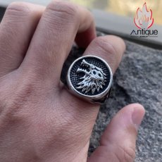 Antique Jewelry パンキッシュ 北欧 狼頭 勲章リング チタン鋼 個性的 レトロファッションアクセサリー