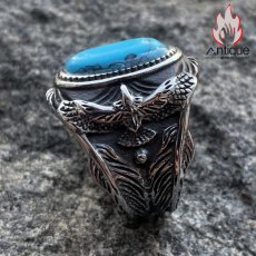 Antique Jewelry レトロパンク風 イーグル メンズリング 個性的 トルコ石装飾リング に興味を持って頂きありがとうございます