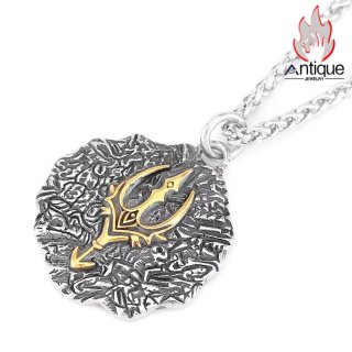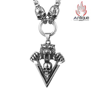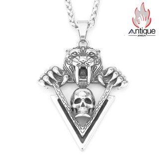 Antique Jewelry 北欧 ヴィキング ロックライオンヘッドシールドネックレス ヴィンテージ ゴシック風オオカミ頭ペンダント