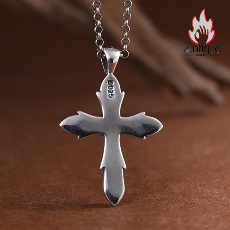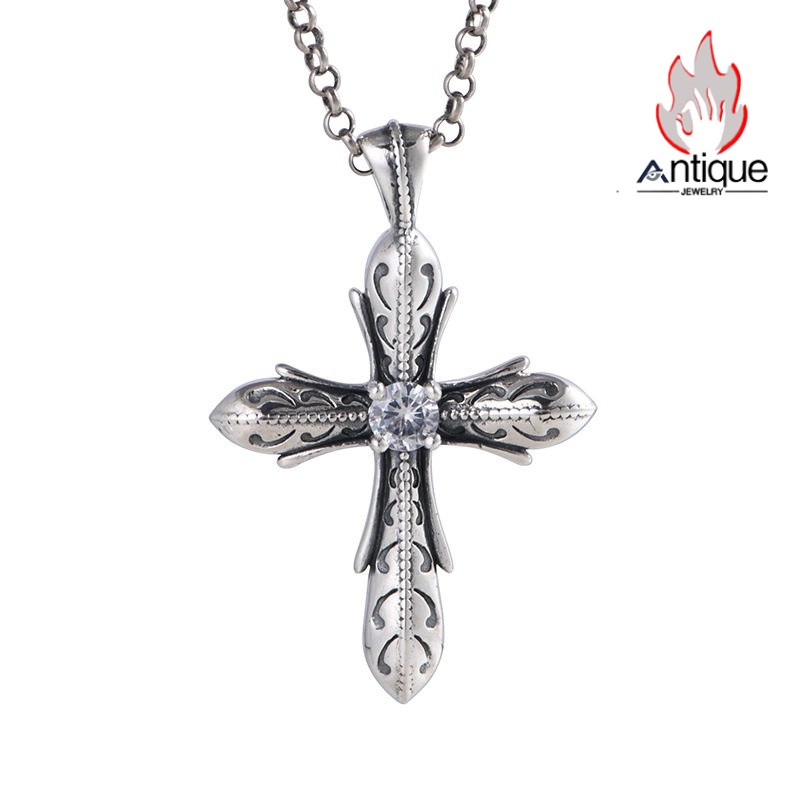 Antique Jewelry S925 シルバー 精巧な十字クルス十字軍花ペンダント ジルコン付き 個性的デザイン