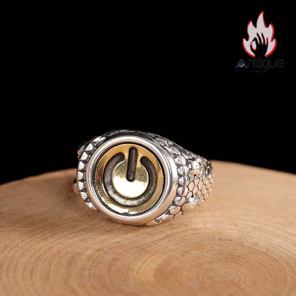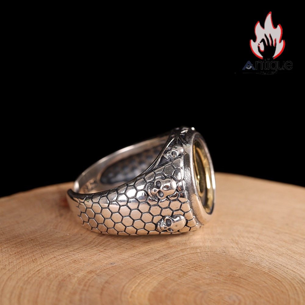 Antique Jewelry S925 シルバー ゴールド調ドクロヘッド鱗模様リング メンズ レトロ欧米風 個性的デザイン
