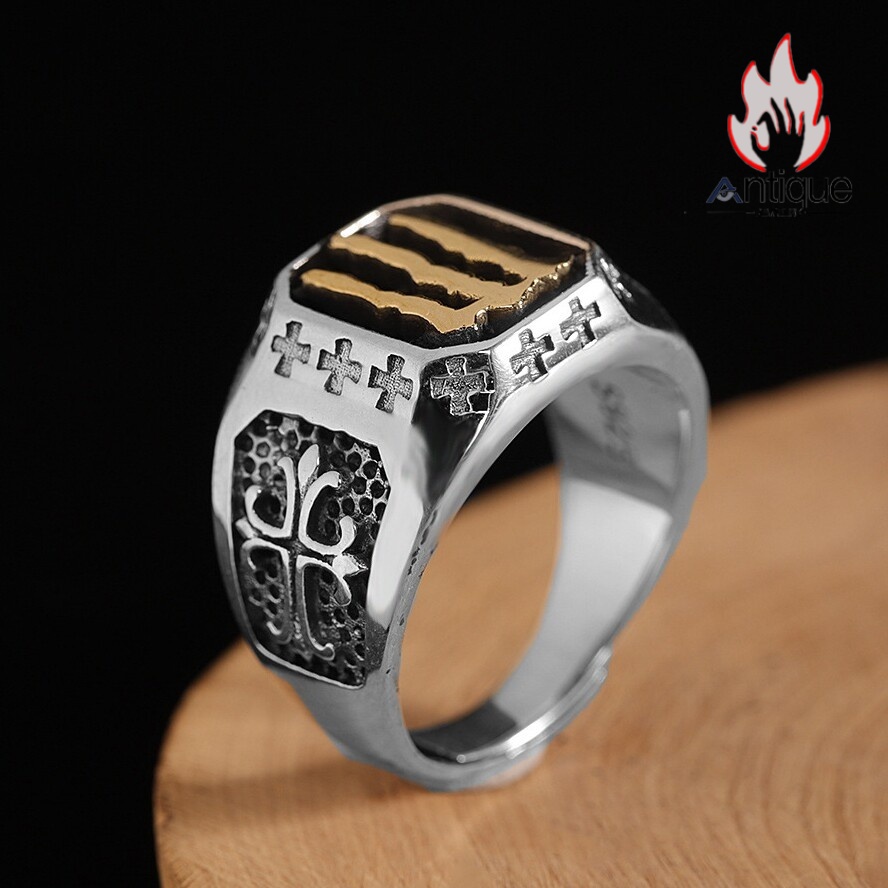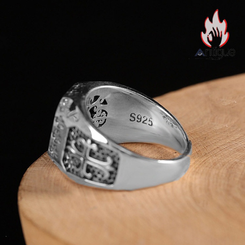 Antique Jewelry S925 シルバー 十字薔薇デザインリング メンズ クロス 欧米風 個性的 レトロ