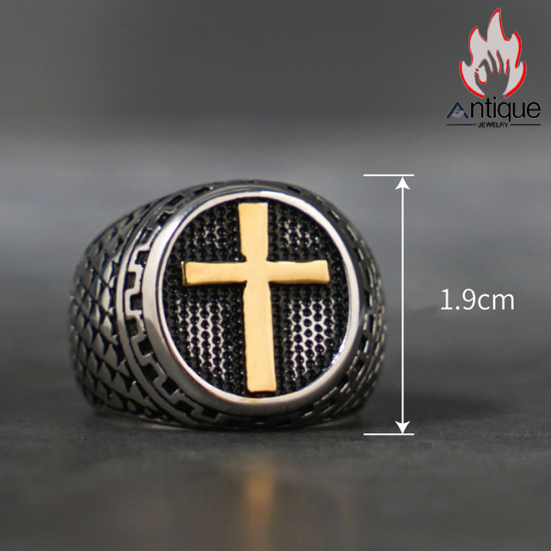 Antique Jewelry レトロ ローマ 十字架 指輪 メンズ チタン鋼 人差し指 リング 刻字可 アクセサリー