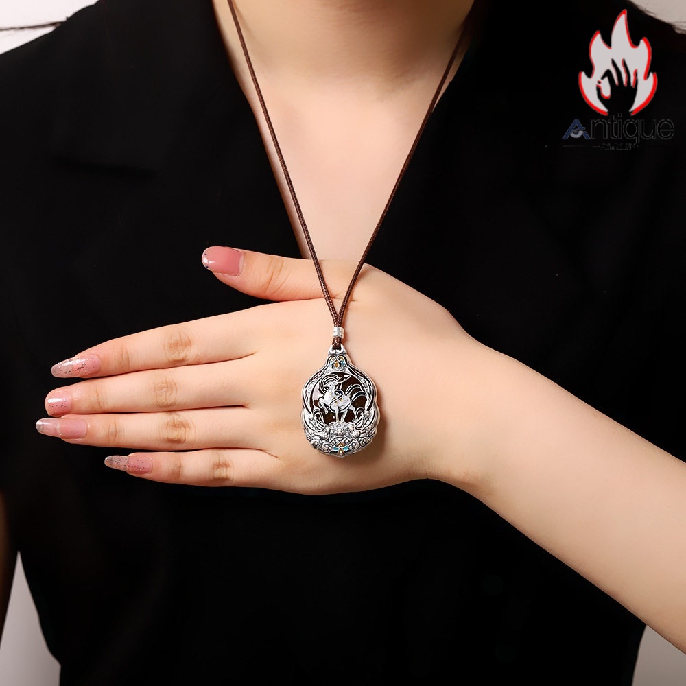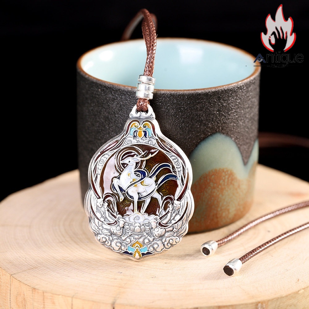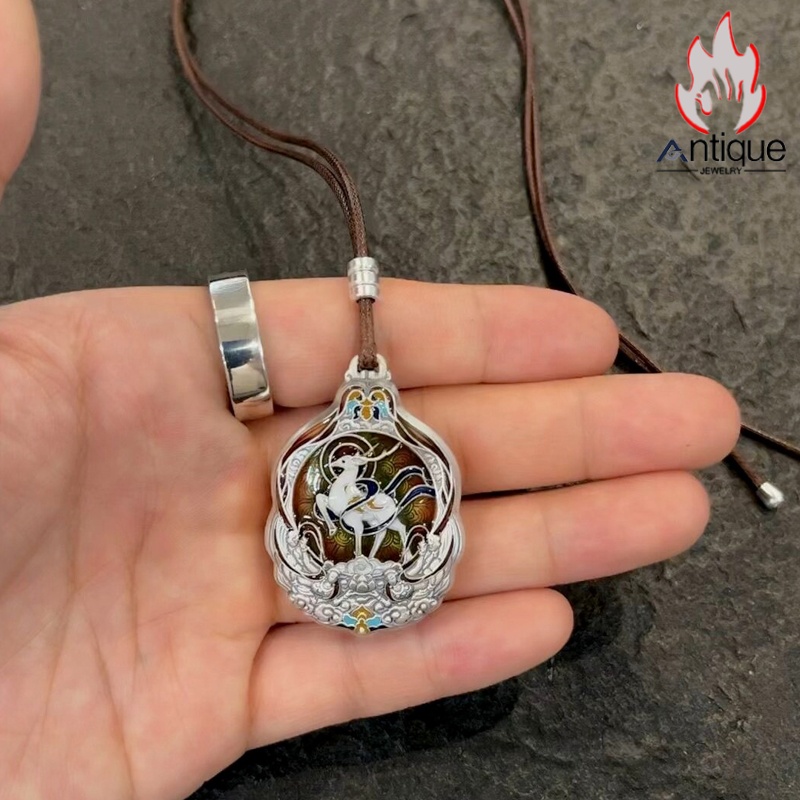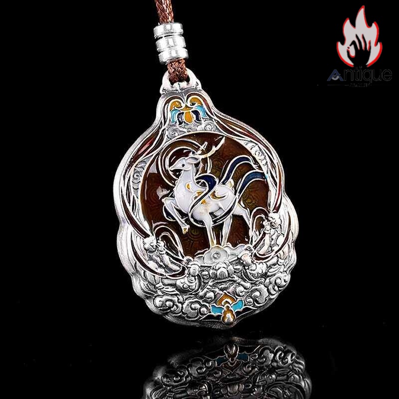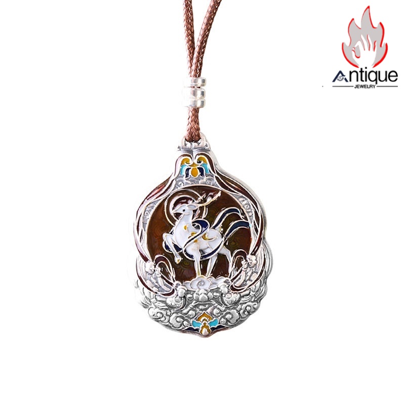 Antique Jewelry S999 シルバー 九色鹿 焼藍ペンダントネックレス レディース 個性デザイン ヴィンテージ