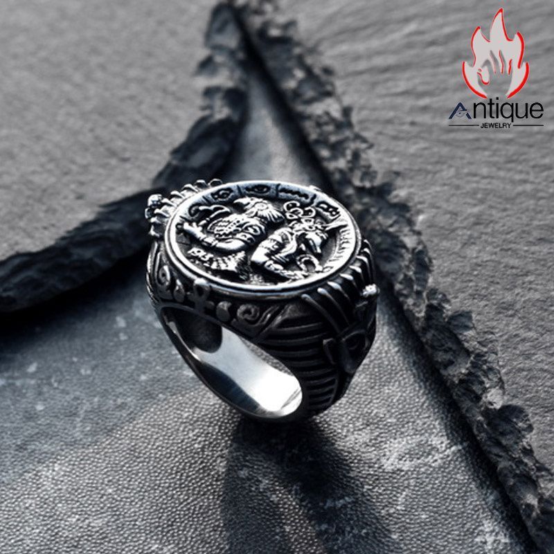 Antique Jewelry 古代エジプトのファラオチュタンカーメンリング、男性向け個性的なファッションリング、チタンスチール素材を使用したレトロ&パワフルリング に興味を持って頂きありがとうございます