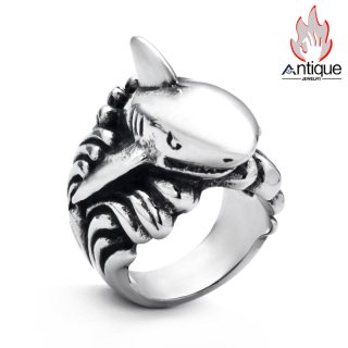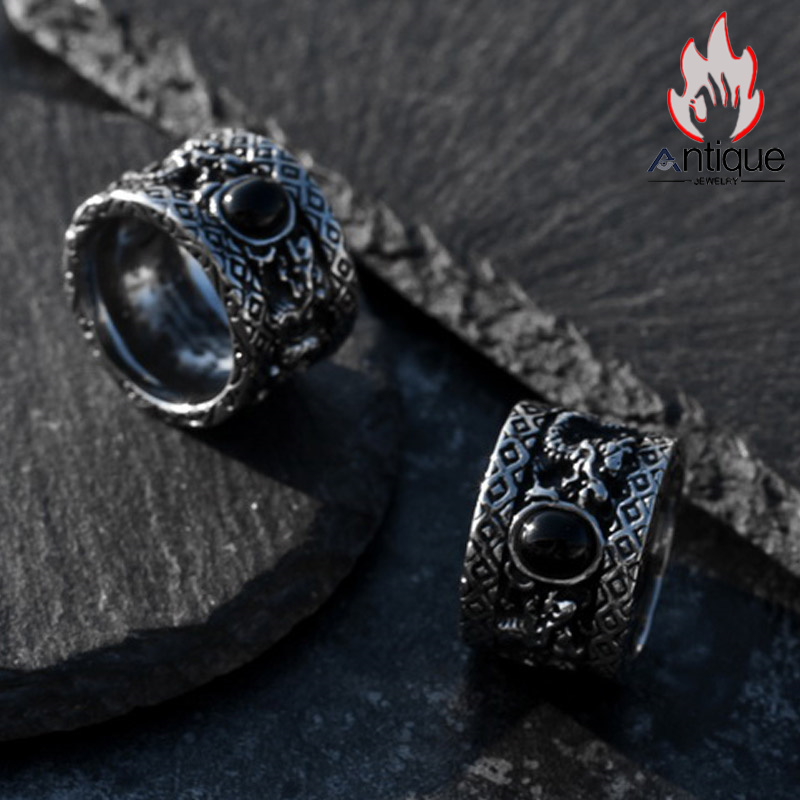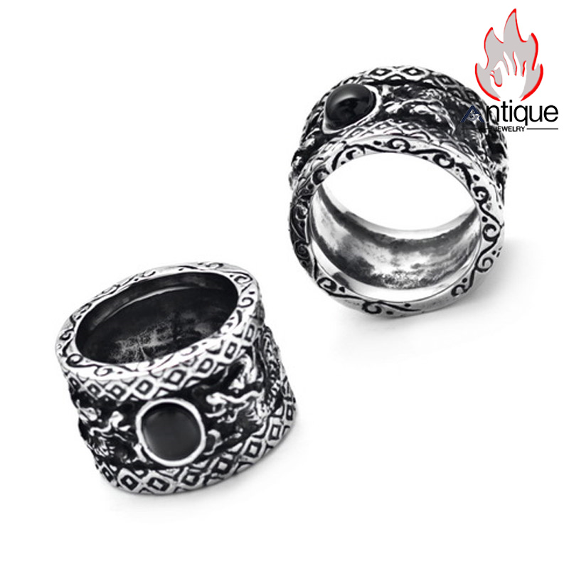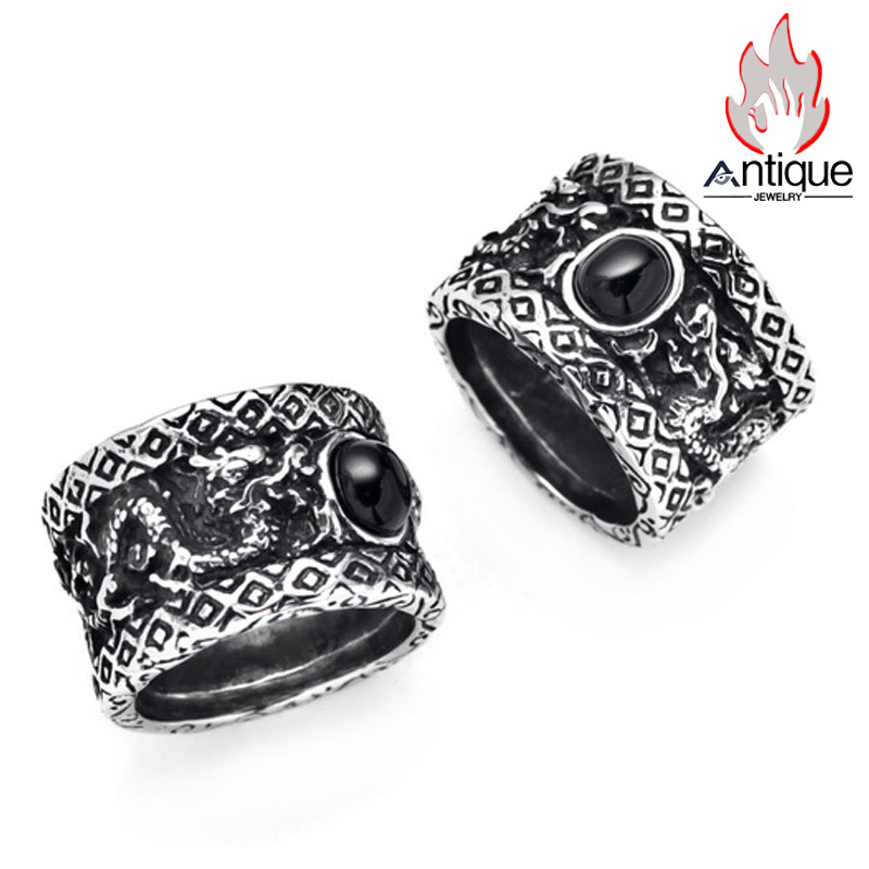 Antique Jewelry 男性向けの個性的なレトロ細指リング、双龍が玉を戯れる図柄が座右の銘の、生肖龍モチーフのタイタンスチールリング に興味を持って頂きありがとうございます