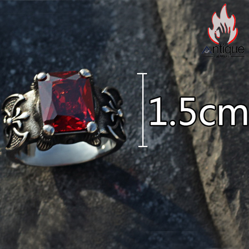 Antique Jewelry 男性向けのレトロゴシックスタイル、赤い宝石が特徴的な個性的なタイタンスチールリング、自己表現の場として使える、シングルで身に付けたい文芸的な食指リング