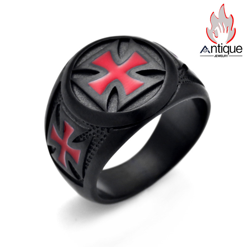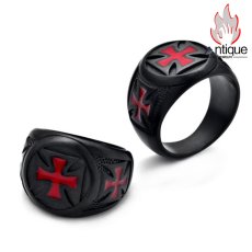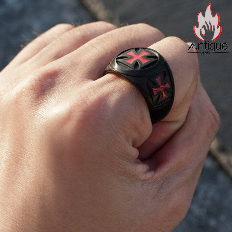 Antique Jewelry 男性向けのダークな十字架指輪。ヒップホップや潮流に合う個性的なタイタンスチールの食指リング、文芸的な印象もある