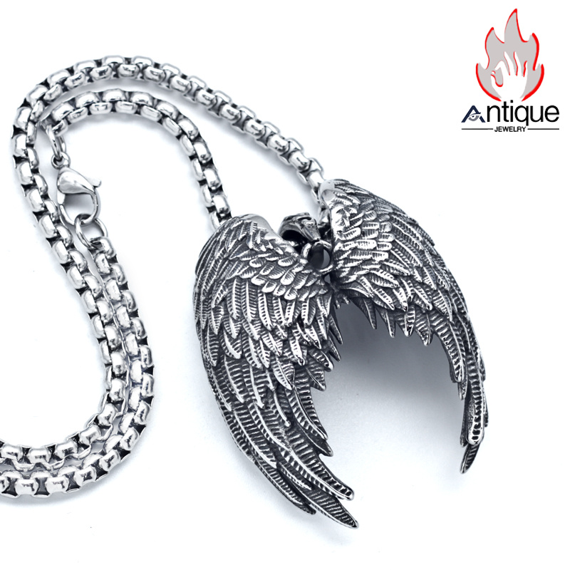 Antique Jewelry レトロなエンジェルウィングペンダント 男性用 個性的なチタンスチールネックレス 潮流アイテムであり、ヒップホップやストリートファッションにもマッチする毛糸の首かけにもおすすめのアクセサリー