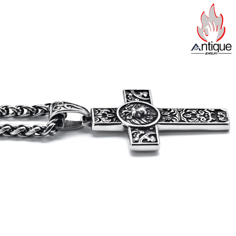 Antique Jewelry 個性的なライオン十字架ペンダント メンズ レトロな吊りペンダントで、万能なチタンスチール毛糸ネックレスにも合わせやすいアクセサリー に興味を持って頂きありがとうございます