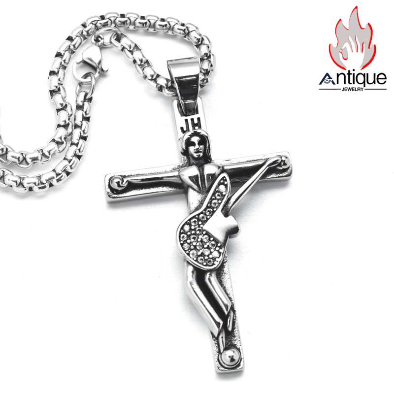 Antique Jewelry ロックベースのダイヤモンドクロスペンダント メンズ 流行のチタンスチール ニットチェーン