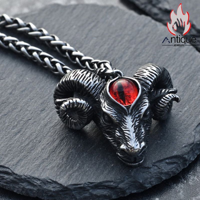 Antique Jewelry 悪魔の目とサタンのヒツジのトーテムネックレス メンズのビンテージスタイル、チタン鋼ペンダントはどんなスタイルにも合う汎用性の高い個性アイテム