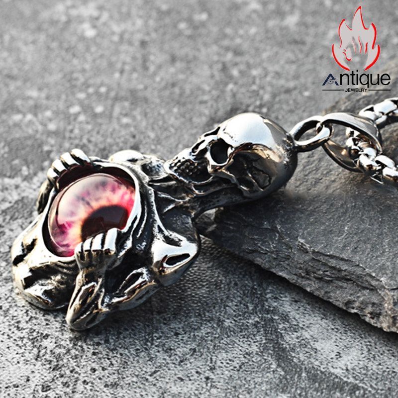 Antique Jewelry ゴッドアイとスカルペンダントの個性的なネックレス メンズのヴィンテージスタイル、チタンスチール製の毛糸チェーンは摩登なアクセサリーになります に興味を持って頂きありがとうございます