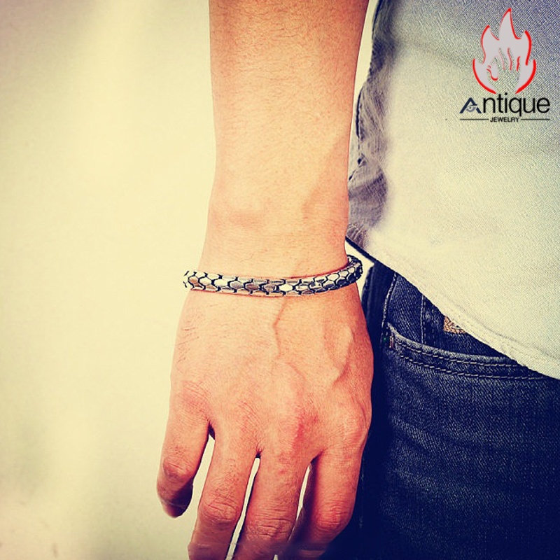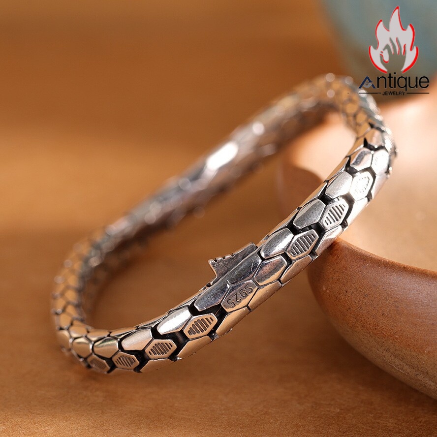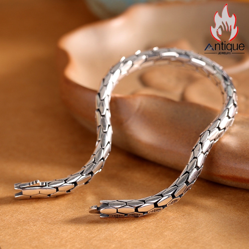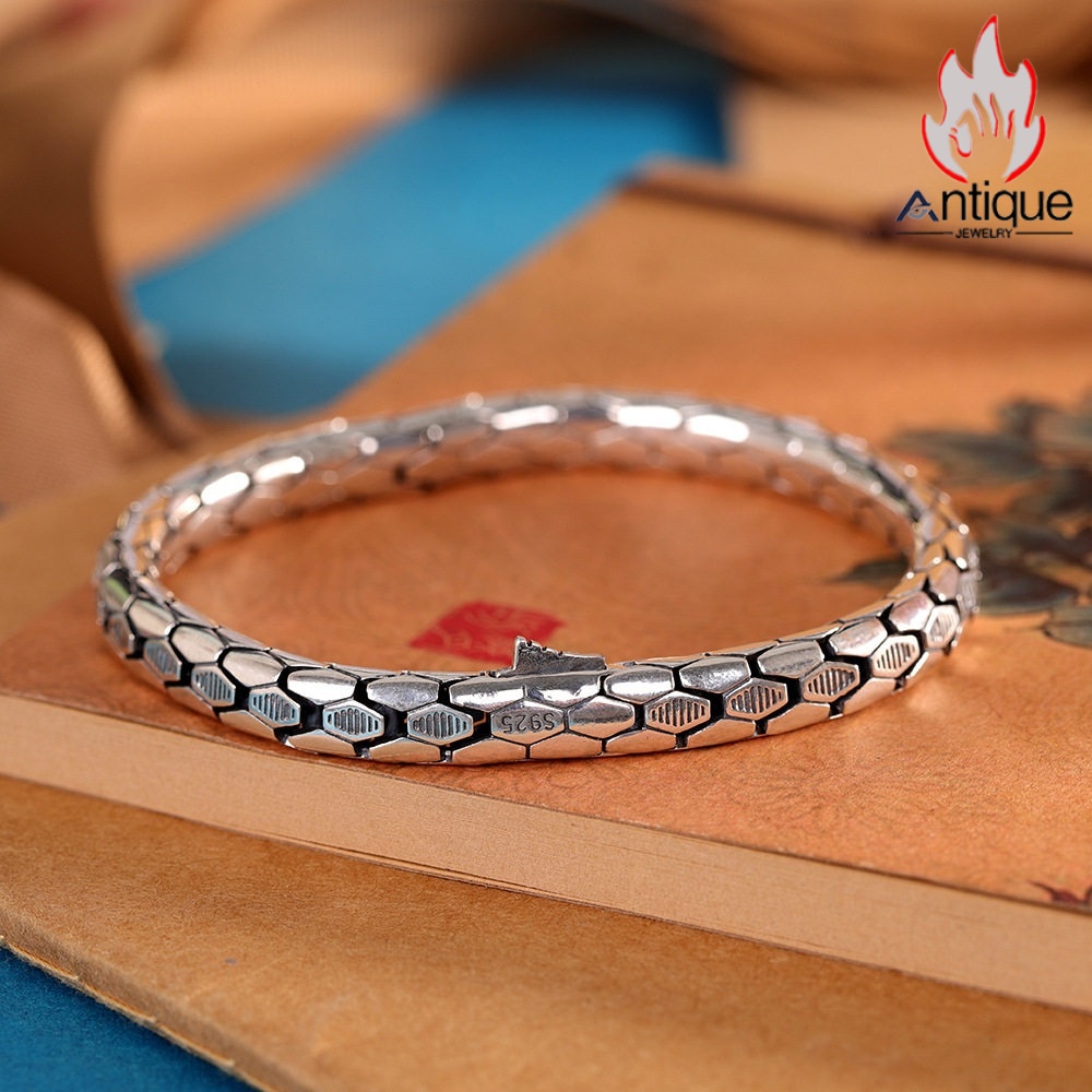 Antique Jewelry S925 シルバー スネークボーンブレスレット ユニセックス光面デザイン 欧米風パンク調 ギフトに最適