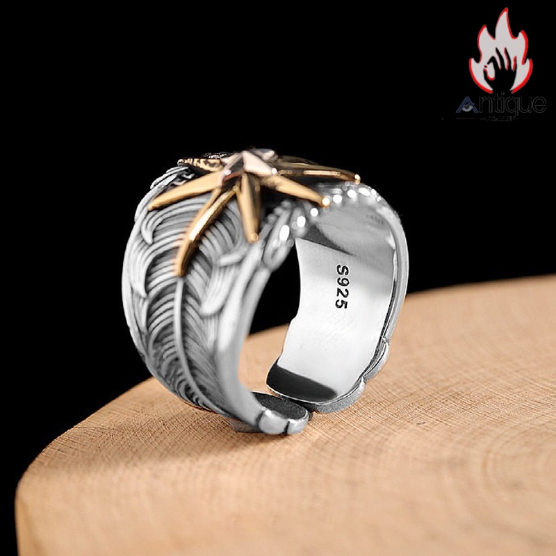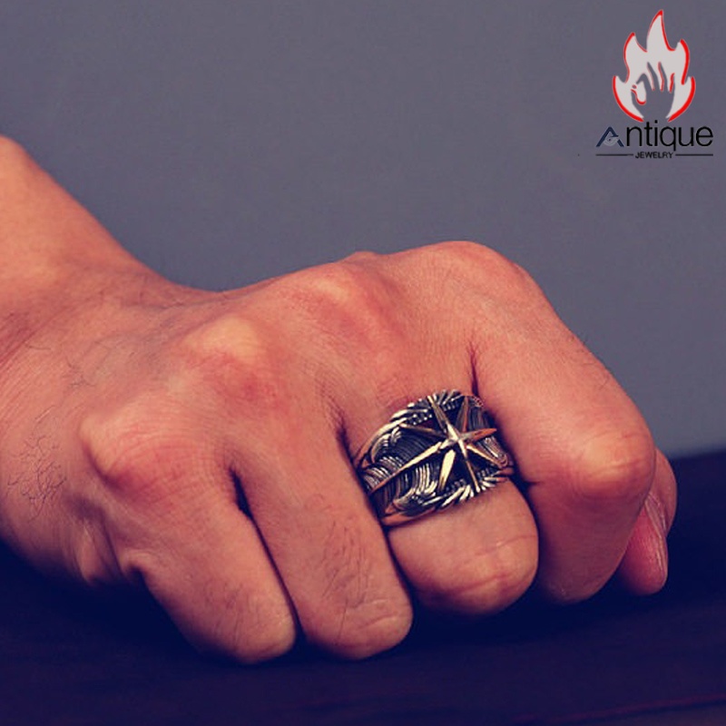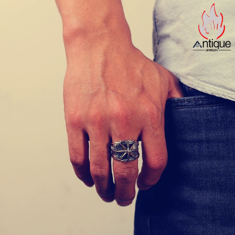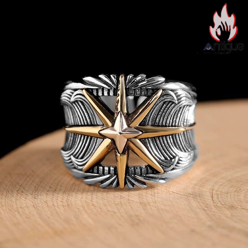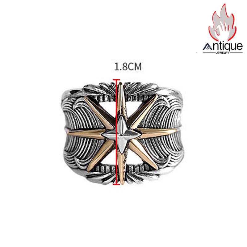Antique Jewelry S925 シルバー サンスターバースト幅広リング 個性的ヒップホップ調 アメリカンヴィンテージデザイン オープンアジャスタブル