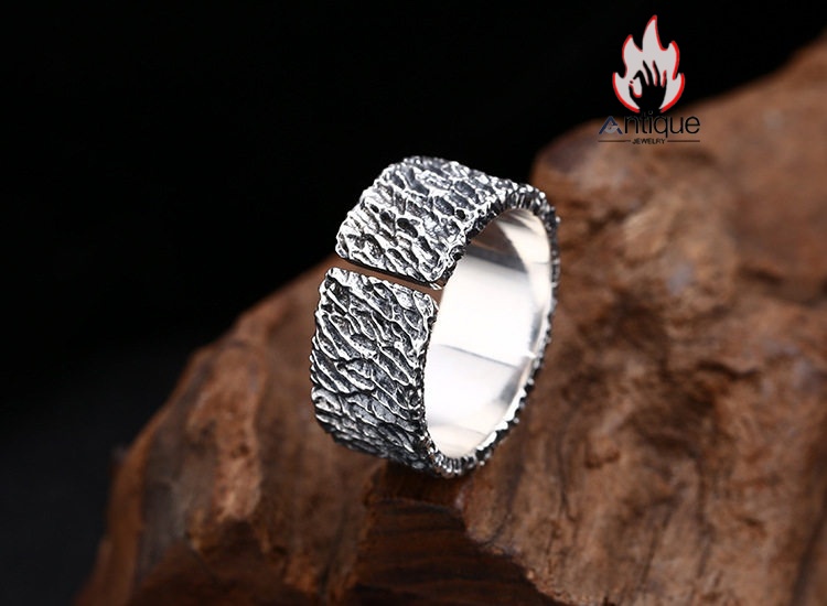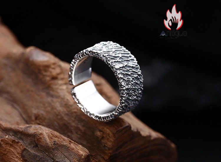 Antique Jewelry S925 シルバー 非対称ストライプ 磨りガラス調 ヴィンテージオープンリング 男女共用 個性ファッション