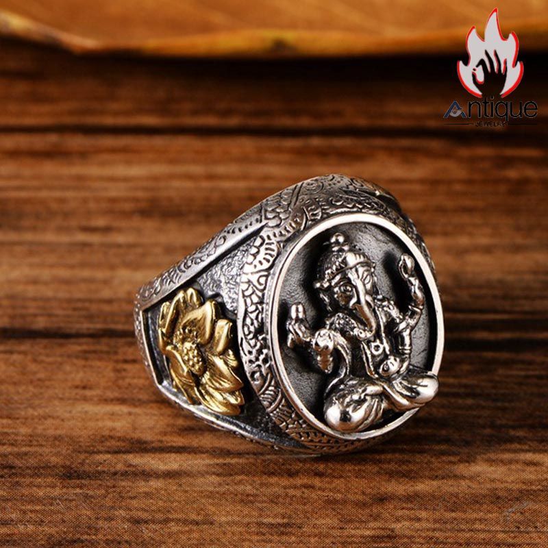 Antique Jewelry S925シルバーアクセサリー ビンテージ シンプル象鼻リング 蓮の花指輪 男性リング