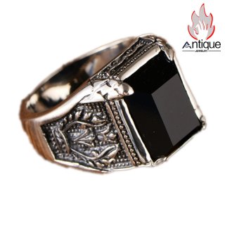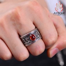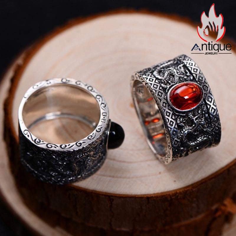 Antique Jewelry S925シルバー ビンテージ メンズファッション指輪 双龍戯珠モチーフ スタイリッシュなインデックスリング 彼へのプレゼントに最適
