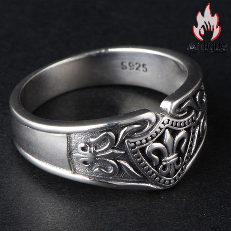 Antique Jewelry S925シルバー ビンテージ メンズ用 クロス・クルセイダー・フラワー・アンカーが融合された欧米風のリング ペアリング