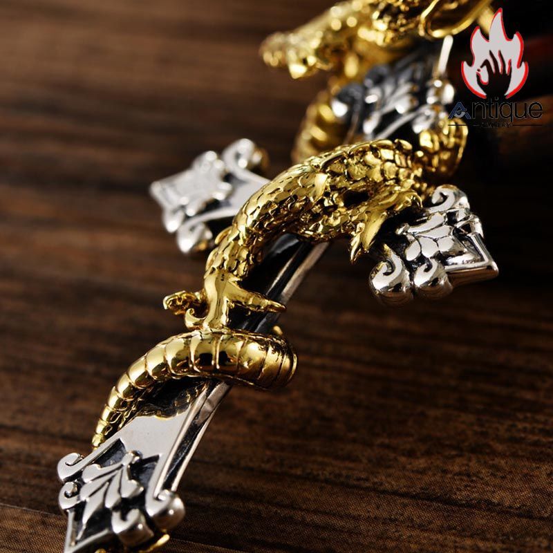 Antique Jewelry ビンテージ&ミステリアス!欧米風ドラゴンクロスペンダントと龍のプレートペンダント!S925銀製のゴージャスなドラゴンシルバーアクセサリー