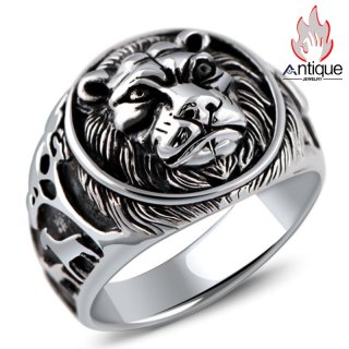 Antique Jewelry シルバーアクセサリー 925、光沢のあるオープンフェイス笑顔メンズリング、個性的な食指リング