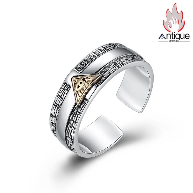 Antique Jewelry S925 シルバー 神の目 オールアイ シンプル鏡面デザイン ヴィンテージ風 リング メンズ レディース ペアリング