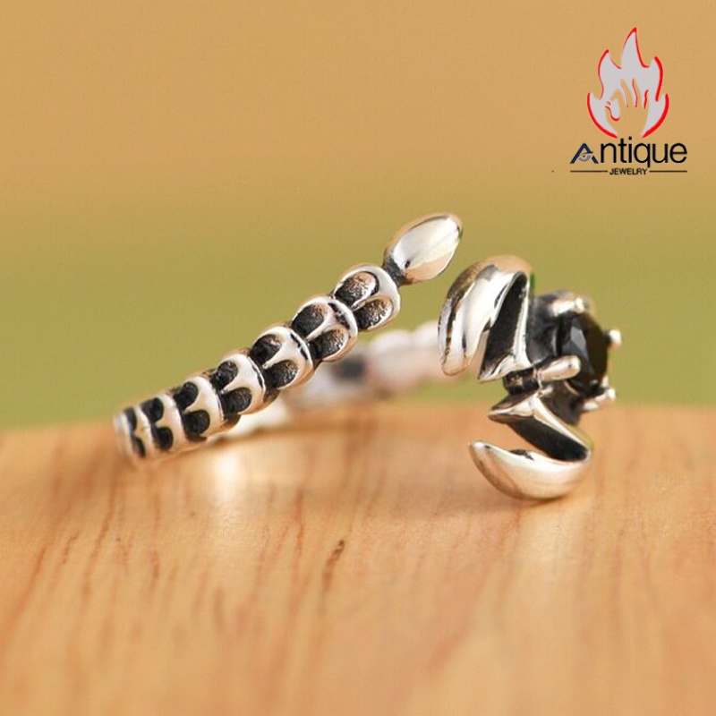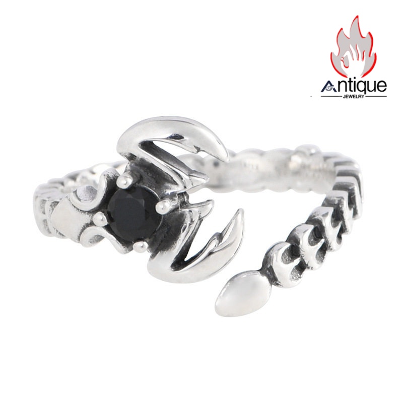 Antique Jewelry S925 シルバー シンプルなさそりデザイン 蠍座オープンリング オニクス付き ユニセックス