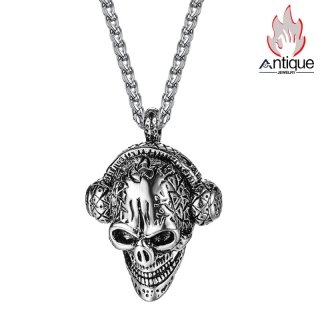 Antique Jewelry 男性用のレトロな骸骨ネックレス、チタン鋼製のペンダントが個性的な長めアクセサリー、プレゼントにも最適