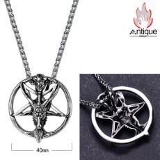 Antique Jewelry 男性用レトロなパン神ヤギネックレス、チタン鋼製の円環と五角星ペンダントが個性的なアクセサリー に興味を持って頂きありがとうございます