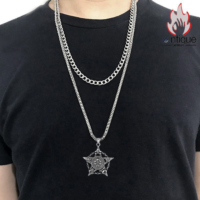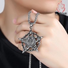 Antique Jewelry タングステンスチール ヴィンテージ舵輪ネックレス 男女兼用 ペンタグラムペンダント 学生向け贈り物
