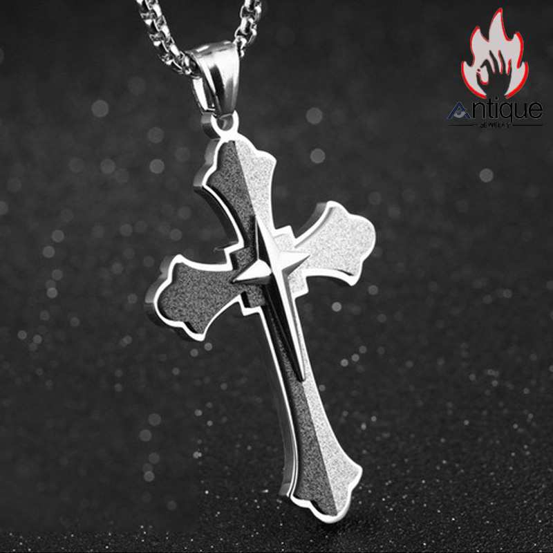 Antique Jewelry 黒マット加工のレトロなチタン十字ペンダントの男性用ネックレス ロングタイプ に興味を持って頂きありがとうございます
