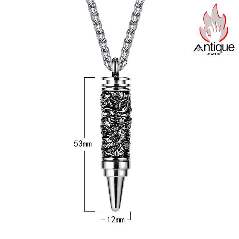 Antique Jewelry 生肖ドラゴンタイプのメンズ用チタンスチール弾丸ペンダントネックレス 個性的な挂坠で男友達へのギフトに最適