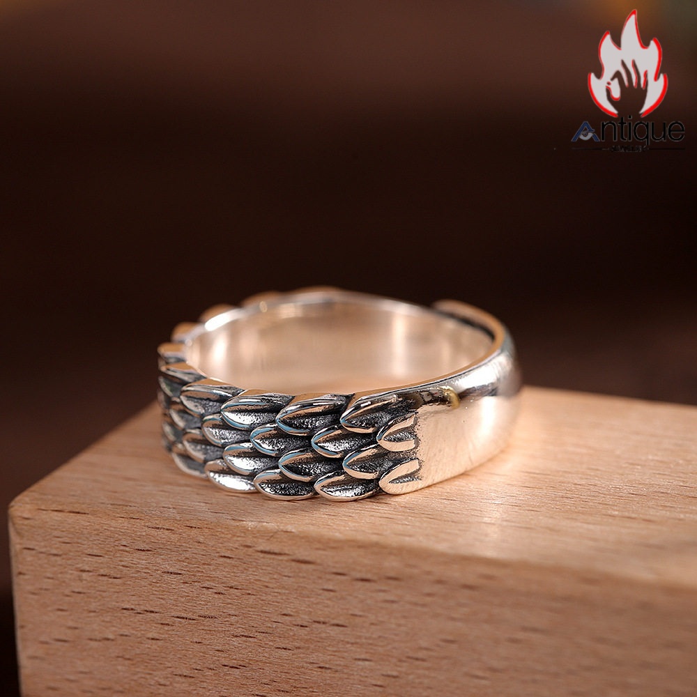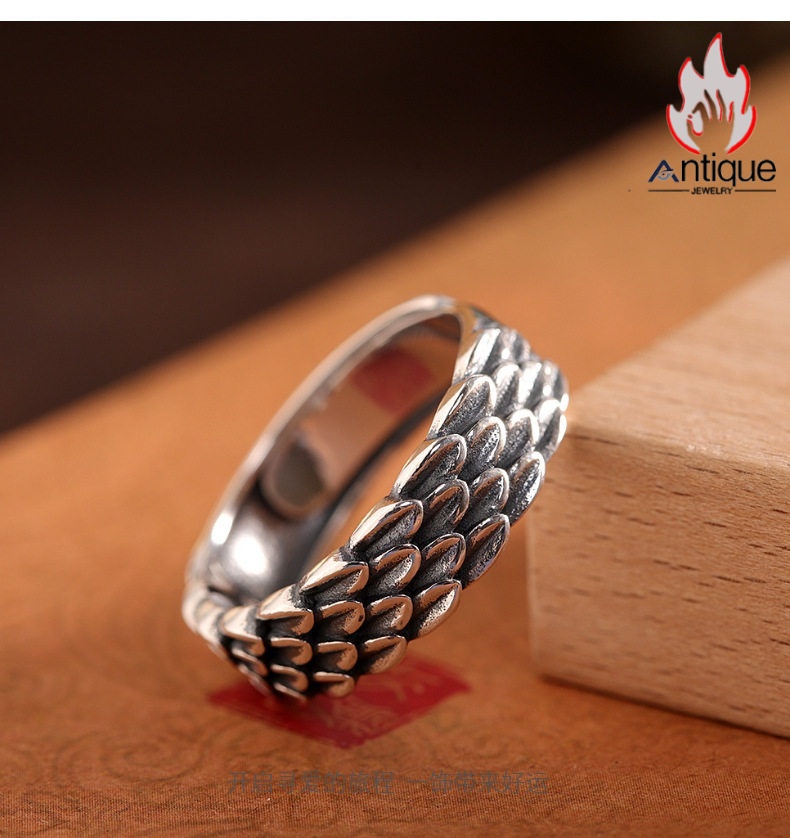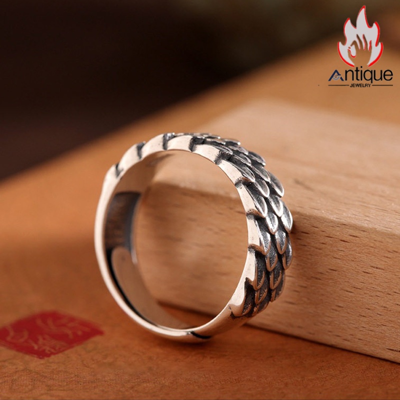 Antique Jewelry S925 シルバー 龍鱗デザインリング ユニセックス ヴィンテージ調 カップル用 オープンリング