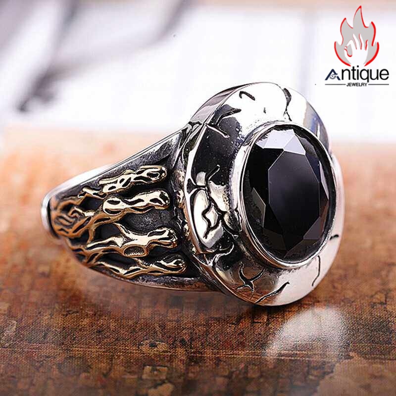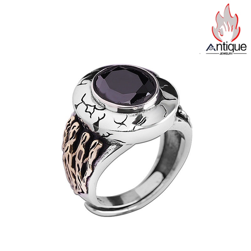 Antique Jewelry S925 シルバーアクセサリー ドクロハンド 黒オニキス ゴシック宮廷 ヴィンテージ メンズオープンリング