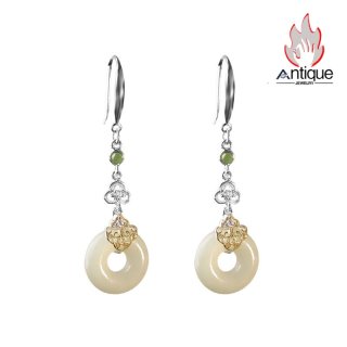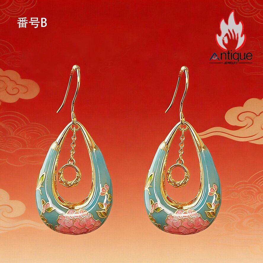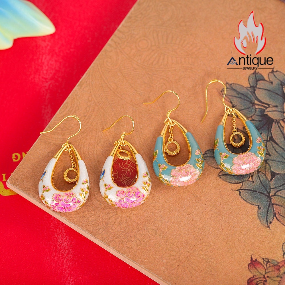 Antique Jewelry S925 シルバー 金メッキ焼藍 牡丹デザインピアス しずく型パステルカラー レディースイヤリング