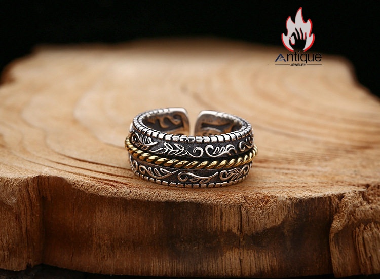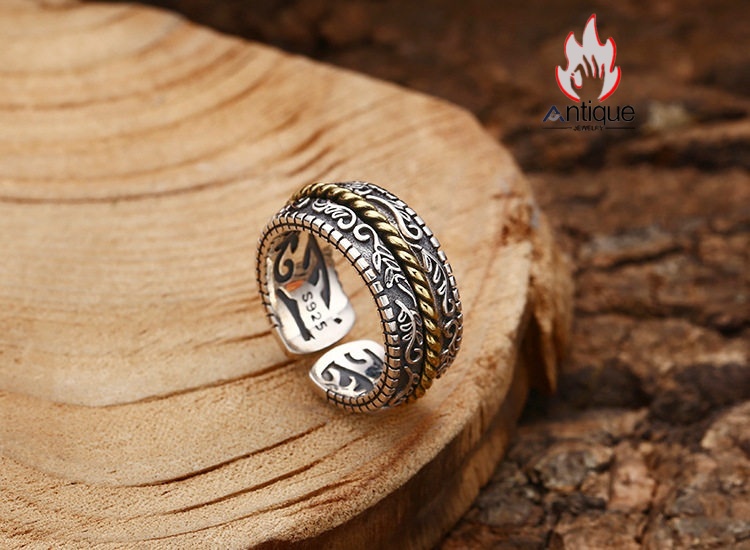 Antique Jewelry S925 純銀 唐草文 メンズリング 古蔦模様 レトロデザイン シンプル オープンリング 調整可能
