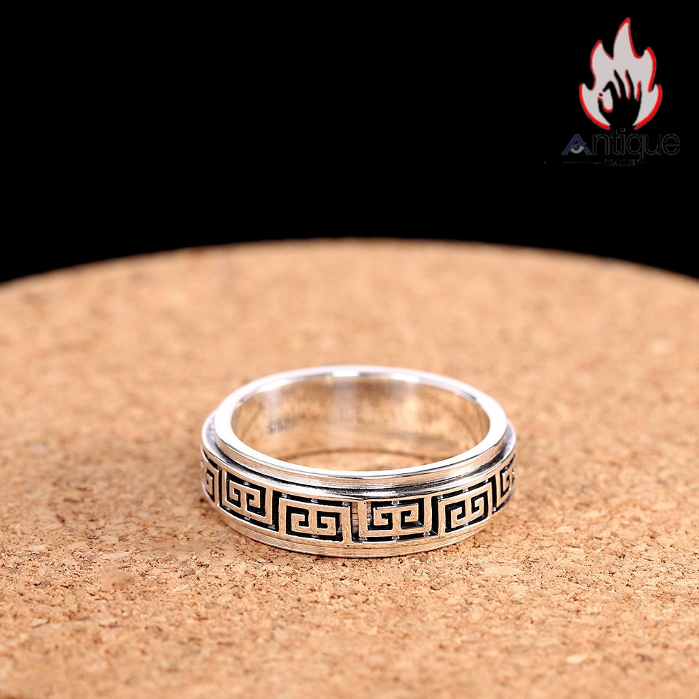 Antique Jewelry S925 純銀 雲柄 祥紋デザイン 二重層 回転可能リング ユニセックス 男女兼用 シンプルファッション 指輪アクセサリー