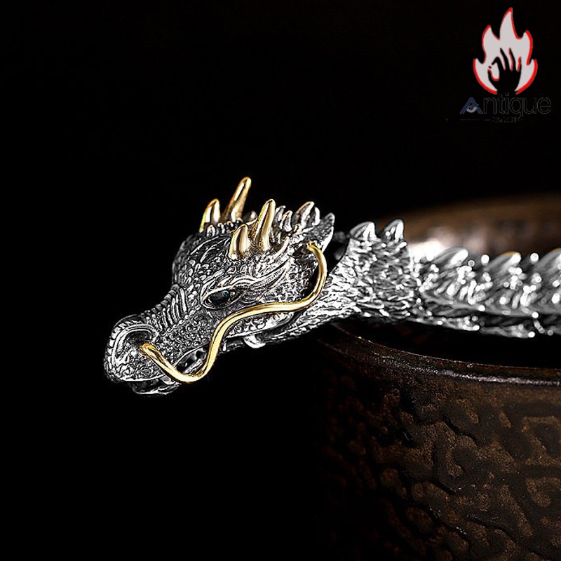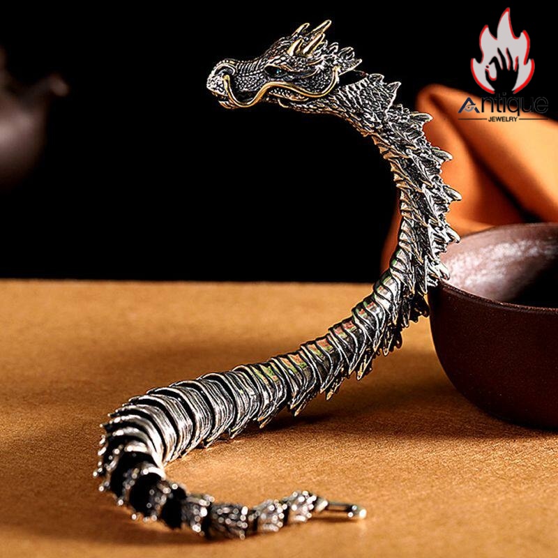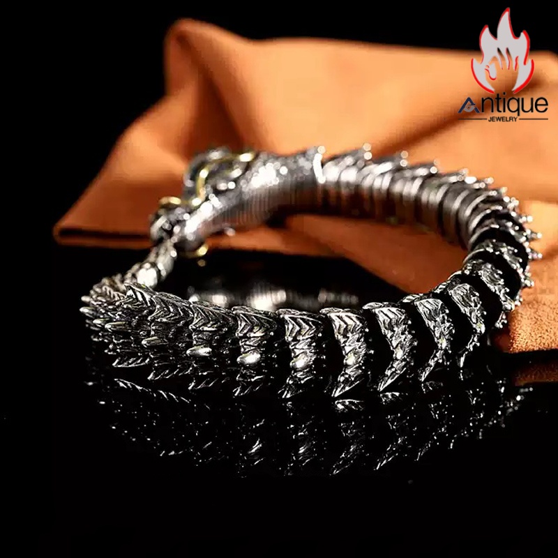 Antique Jewelry S925 シルバー 十二支 龍頭 龍骨ブレスレット メンズ ヴィンテージ ゴシック風 プレゼント 誕生日ギフト